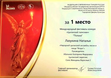 1 место за Цыганский перепляс “Полька”