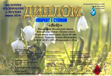 Международный многожанровый конкурс-фестиваль “Капля Славы” порадовал званием Лауреата I степени участников хореографической студии “Belly”. По итогу конкурса коллектив прошел в ПОЛУФИНАЛ, который состоится в г. Кострома, с чем мы их от всего сердца поздравляем!