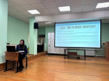После чего для участников прошел тренинг “Этика библиотекаря”. Сотрудник методического отдела Хорошавина Е.А. рассказала об основах эффективного общения с читателями; о том как избегать конфликтов на рабочем месте; каким правилам стоит следовать для предупреждения проблем, связанных с обслуживанием пользователей библиотеки.