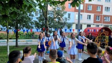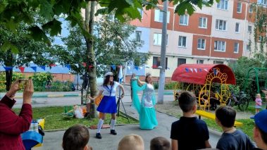 Яркий праздник двора прошёл сегодня с участием “Образцового самодеятельного коллектива” “Браво”, Алёны Демченко и Алексея Семёнова.