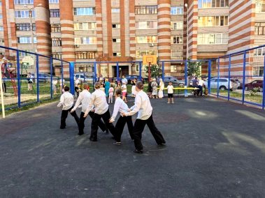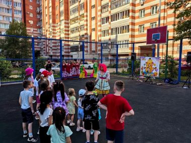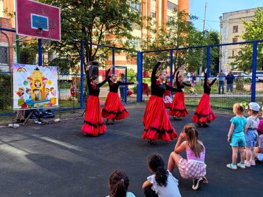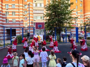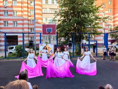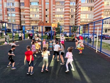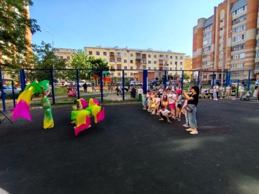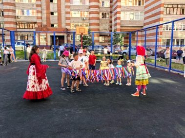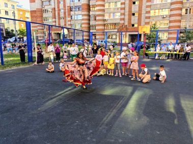 На детской площадке было весело и шумно. Ребята с удовольствием играли с забавной Клоунессой. Зажигательные и яркие танцы от Образцового ансамбля бального танца “Созвездие” и Хореоргафического коллектива танцев народов мира “Лотос” стали настоящим украшением праздника.