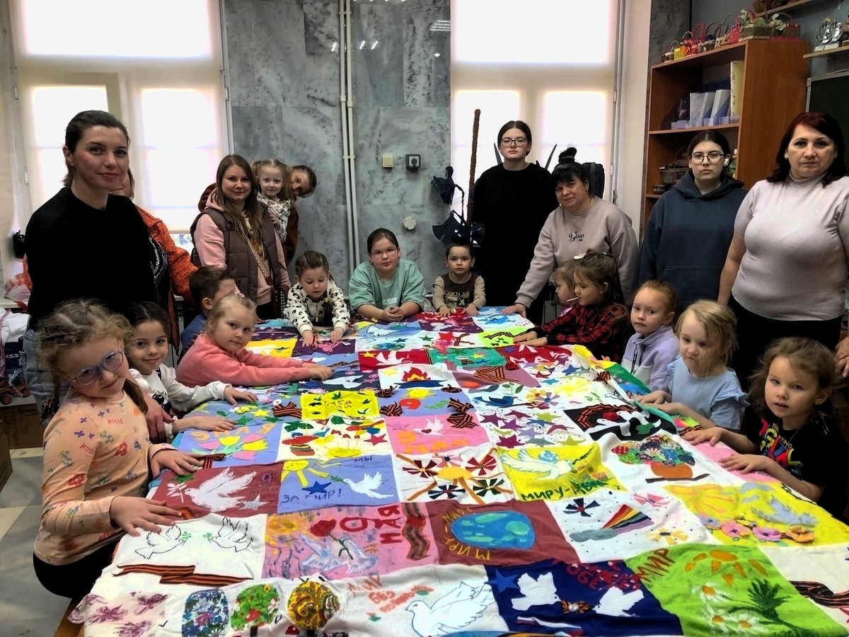 В Доме Культуры “ШАТСКИЙ” стартовала акция “Полотно мира”, где участники оформили небольшие кусочки ткани, затем все фрагменты пришили к полотну. “Полотно мира” увеличивается с каждым годом!