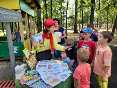 Под открытым небом все желающие смогли записаться в библиотеку, поучаствовать в мастер-классах, конкурсах, викторинах, поиграть в активные игры.