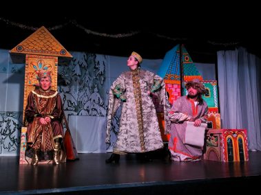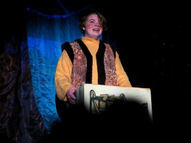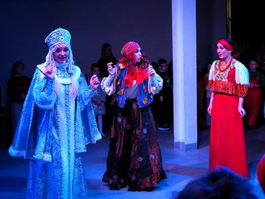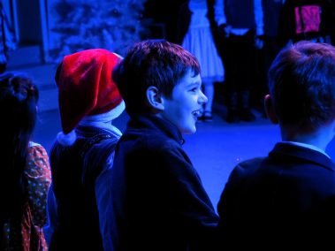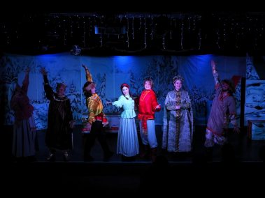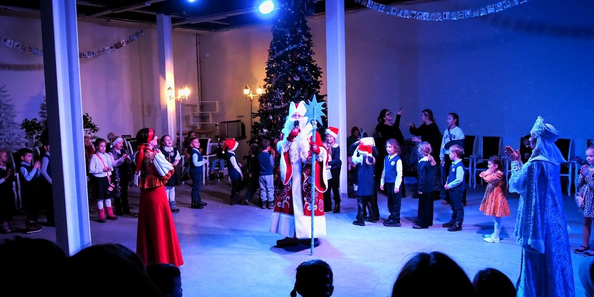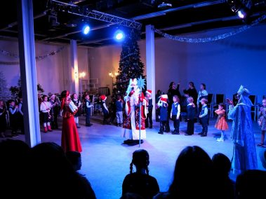 Наши юные зрители весело потанцевали и поиграли в подвижные игры у праздничной ёлки вместе со сказочными персонажами, Дедом Морозом и Снегурочкой. А потом, пройдя в зрительный зал, погрузились в волшебную историю…