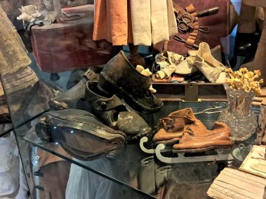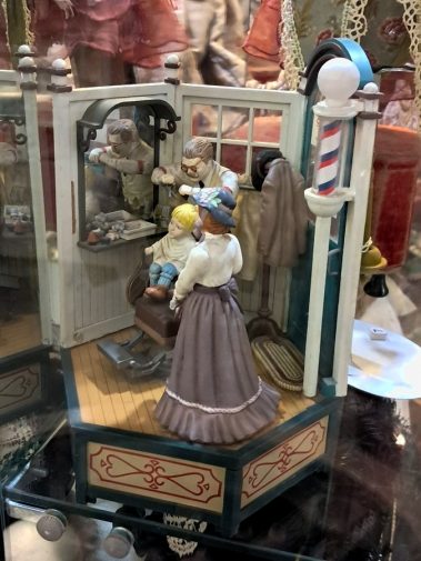 И все эти буфетики с уменьшенными копиями чашечек, прялочек и зеркал – тоже про это. Маленькие жаровые утюжки, действующие игрушечные швейные машинки, детские коляски и люльки, купольная обувь – все это выпускалось фабриками наряду с полноразмерными изделиями как украшения интерьеров, как оформление витрин, как реклама. Для рекламы же портнихи-модистки шили уменьшенные копии нарядов на кукол и размещали их в витринах.
