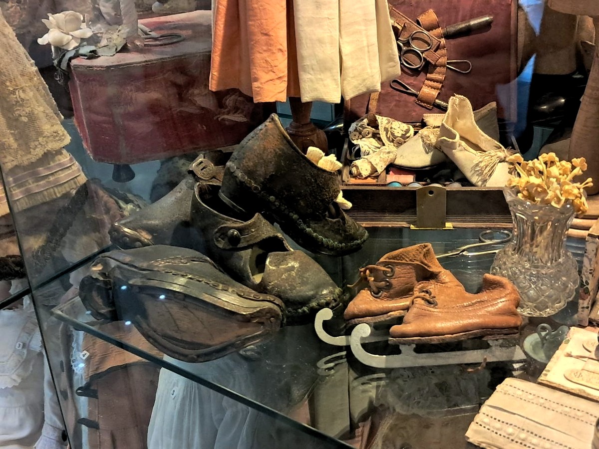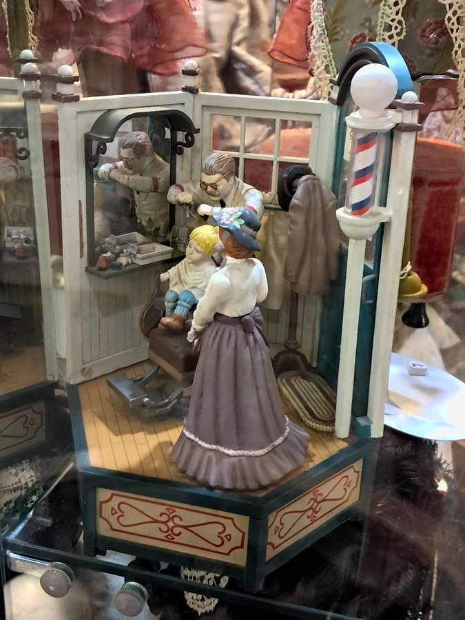 И все эти буфетики с уменьшенными копиями чашечек, прялочек и зеркал – тоже про это. Маленькие жаровые утюжки, действующие игрушечные швейные машинки, детские коляски и люльки, купольная обувь – все это выпускалось фабриками наряду с полноразмерными изделиями как украшения интерьеров, как оформление витрин, как реклама. Для рекламы же портнихи-модистки шили уменьшенные копии нарядов на кукол и размещали их в витринах.