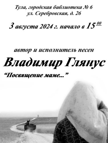 В исполнении Владимира Глянуса прозвучат авторские песни и песни известных исполнителей о маме, семейных традициях, любви, надежде, понимании и поддержке.