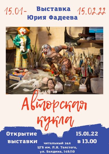 Приглашаем вас на открытие выставки «Авторские куклы» тульского мастера Юрия Фадеева. Основная работа мастера непосредственно связана с куклами, Юрий Фадеев работает художником-конструктором в Тульском государственном театре кукол.