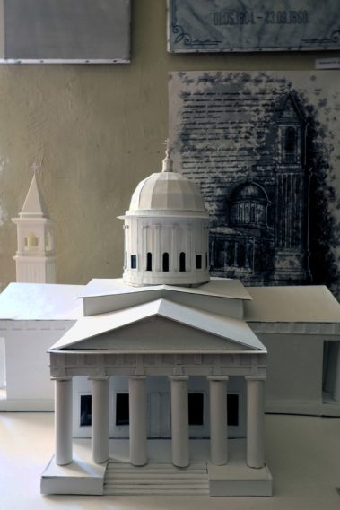 2. Был украшен херувимами. Классический стиль храма вдохновлен строгими формами архитектуры Древней Греции и Рима. Архитектор умело использовал классические элементы декора на фасаде здания. Фриз барабана был украшен лепными розетками с каменными головками ангелов-херувимов. Сохранилась одна небольшая головка каменного ангела, сейчас ее можно увидеть в экспозиции музея.