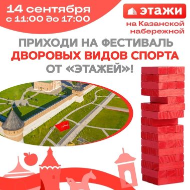 Ждем вас 14 сентября с 11:00 до 17:00 на Казанской набережной, между Ивановской башней и башней На погребу.