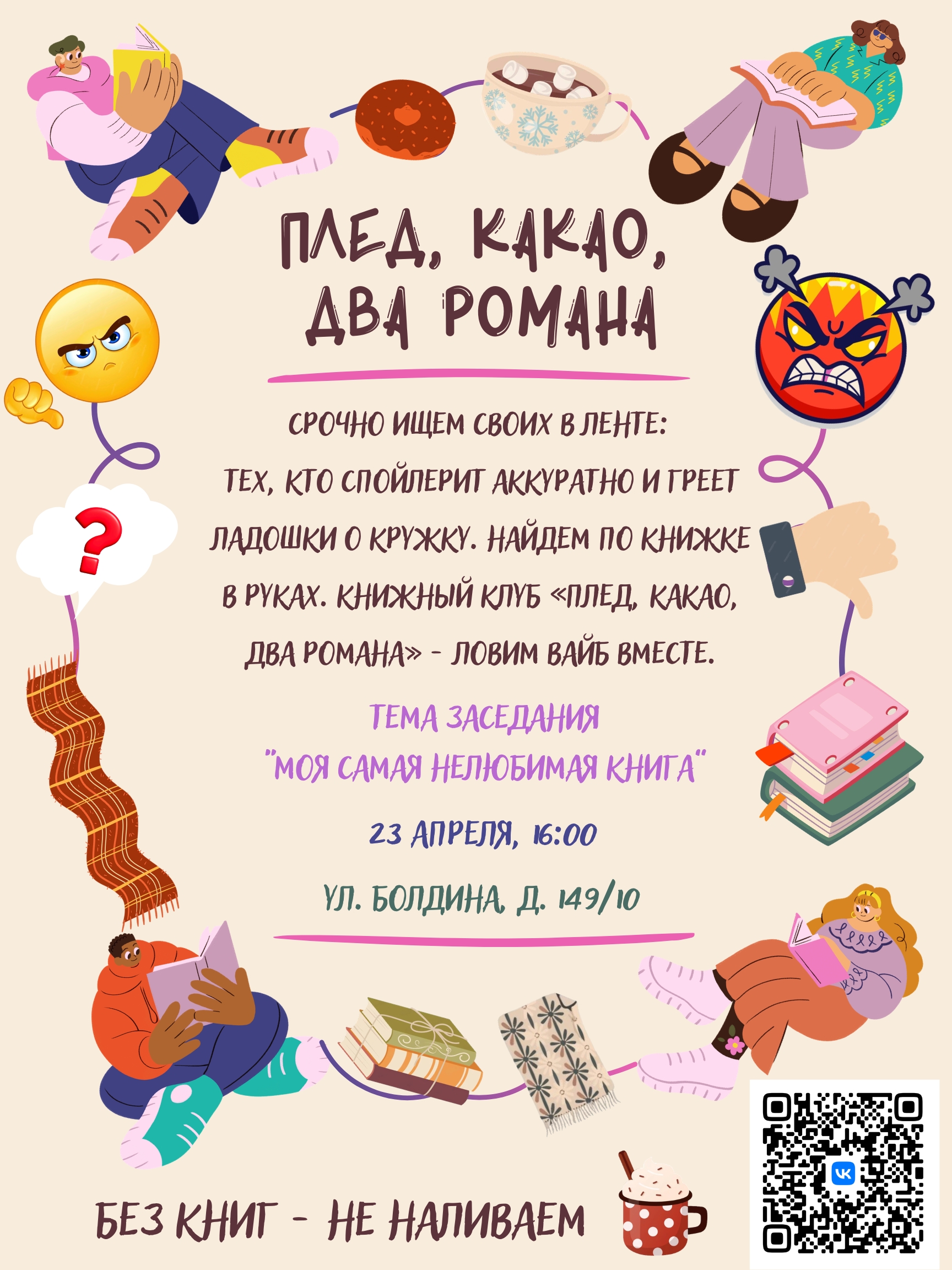 На ближайшей встрече книжного клуба “Плед, какао, два романа” никаких восторгов. Только книги, которые нас разочаровали, рассердили или откровенно бесили. Приносите ту самую. Расскажете, за что вы её… не любите.