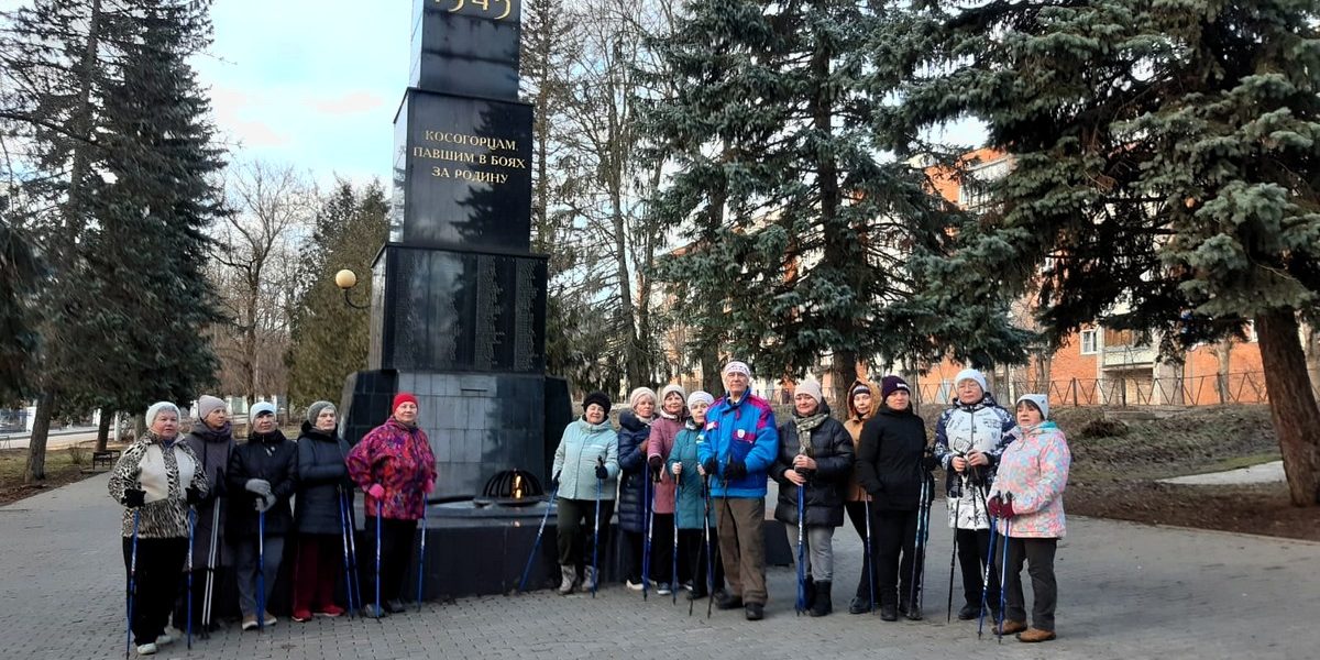 В воскресенье 2 февраля клуб “Оптимисты. Северная ходьба” 16 человек прошли по 2,5км по местам боевой славы посёлка Косая Гора.