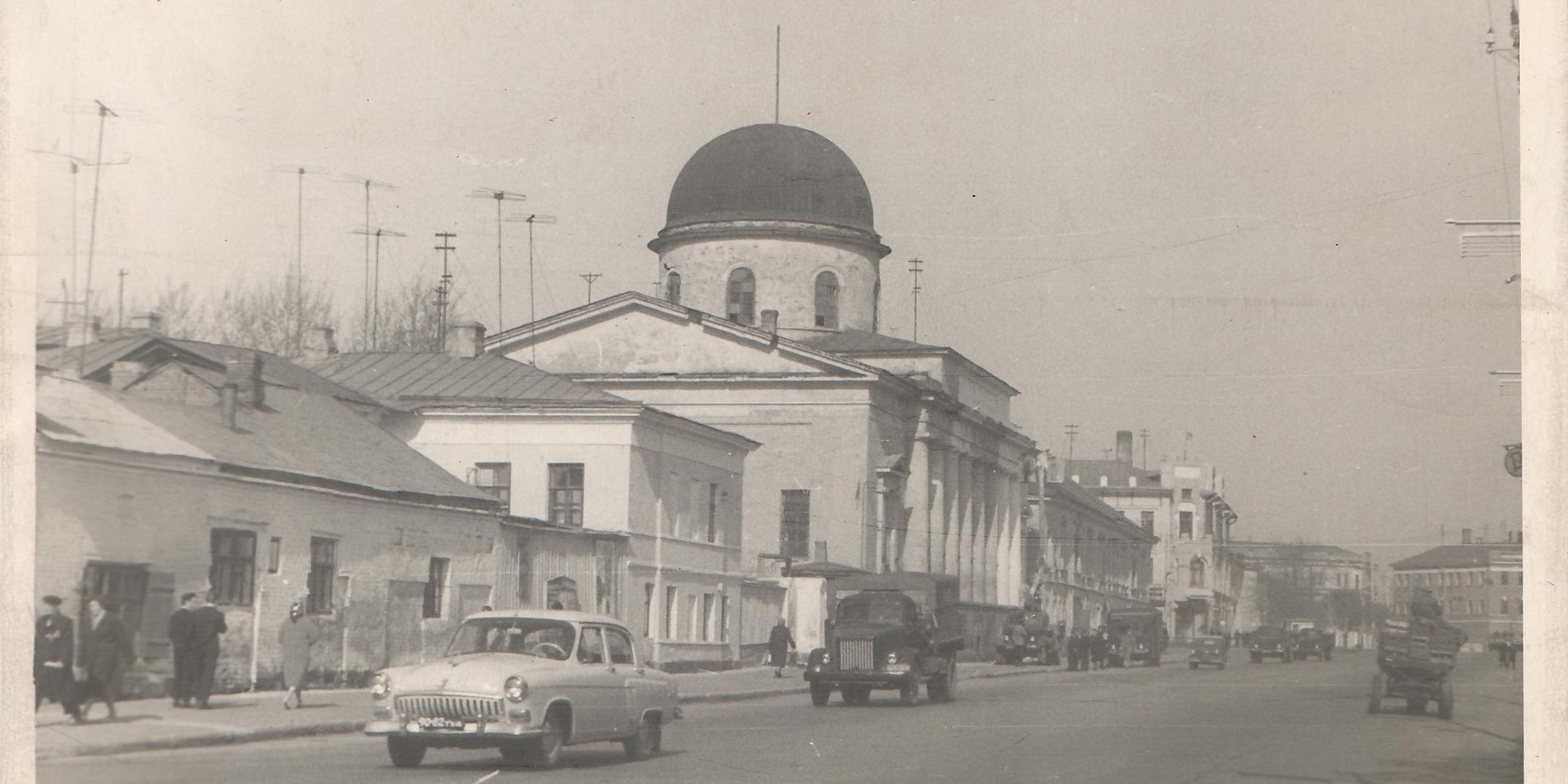 Определить, где снято фото, труда не составило – в самом центре снимка запечатлена церковь Преображения Господня, весьма редкий для Тулы памятник классической архитектуры эпохи Николая I. Но в остальном пейзаж изменился до неузнаваемости. Изо всех зданий, изображенных на фото, до наших дней, помимо церкви, дошли лишь видимые вдалеке дома на площади Челюскинцев (ныне Крестовоздвиженской) – Дворец пионеров и соседний с ним, долгое время называвшийся Дворцом труда. Всю остальную застройку время не пощадило. Фото сделано примерно с места пересечения улиц Менделеевской и Тургеневской. Хорошо, ближайший к фотографу дом доверия, что называется, не внушает. Но кому и чем помешал следующий за ним вполне свежий и крепкий двухэтажный – вопрос, что называется, риторический. То же можно сказать и о видимом вдали доме Ермолаева-Зверева, который легко можно узнать по срезанному углу с эркером и о котором мы уже писали подробно (https://vk.com/tiam.daily?w=wall-223049316_698).