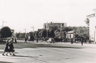 Регулировщика возле здания облисполкома поставили не зря: движение здесь по меркам тогдашней Тулы было весьма оживленным. В кадр попали три автомобиля: один грузовой и два легковых. Автомобильным разнообразием СССР не отличался никогда, а в конце 1950-х были в ходу всего-то три марки легковушек: ЗИЛ, ГАЗ да «Москвич». Немногочисленные трофейные автомобили к тому времени уже исчезли, хотя один предвоенный БМВ, помнится, в середине 1980-х изредка выползал на тульские улицы. Продукция завода ЗИЛ, совсем недавно бывшего ЗИСом, предназначалась для служебных нужд высшей власти, и за пределами Москвы встречалась крайне редко. Волжского автозавода не существовало даже в проекте – эпохальное соглашение о его строительстве было подписано министром автомобильной промышленности СССР А.М. Тарасовым и главой концерна «Фиат» Джанни Аньелли в августе 1966-го. «Запорожец» еще не вышел из стадии опытных разработок: на конвейер завода «Коммунар» известный всем «горбатый» стал тремя годами позже, в 1960-м. Легковые же машины Горьковского автозавода были представлены в основном «Победами», которые мы и видим на фото: одну светлую на заднем плане, возле самой площади Челюскинцев, и одну потемнее в середине фото.