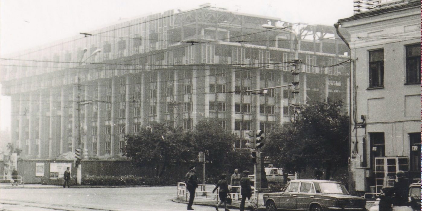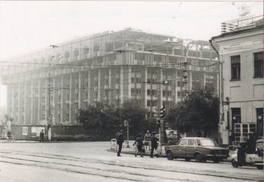 Рекордсменом среди местных «строек века» стал, конечно же, “белый дом” — один из этапов его возведения как раз запечатлен на снимке. Нынешнее его жаргонное название появилось лишь в прессе эпохи перестройки и гласности, в самом конце 1980-х. В те времена в журналистике хорошим тоном считалось, если уж пишешь что-то о Советской власти, непременно написать это с какой-нибудь подковырочкой. Один весьма известный в Туле конца 1980-х и начала 1990-х журналист (ныне, по слухам, проживающий в Польше) неизменно называл в своих заметках памятник Ленину на одноименной площади Тулы не просто “Ильич”, но “шароголовый Ильич”. Такой вот пунктик был у человека. На этом фоне пресса начала 1980-х были куда спокойнее и сдержаннее, хоть и несравнимо скучнее. Новое здание, где под одной крышей должны были разместиться все партийные и советские структуры, управлявшие городом и областью, называлось в печати исключительно Домом Советов. Цели архитекторов, составлявших его проект в Москве, по тем временам выглядели весьма благими: открыть вид на недавно отреставрированный Кремль и на здание областной библиотеки (ныне Музей самоваров), а кроме того, наконец-то создать городскую площадь, где можно было бы проводить военные парады и демонстрации трудящихся.