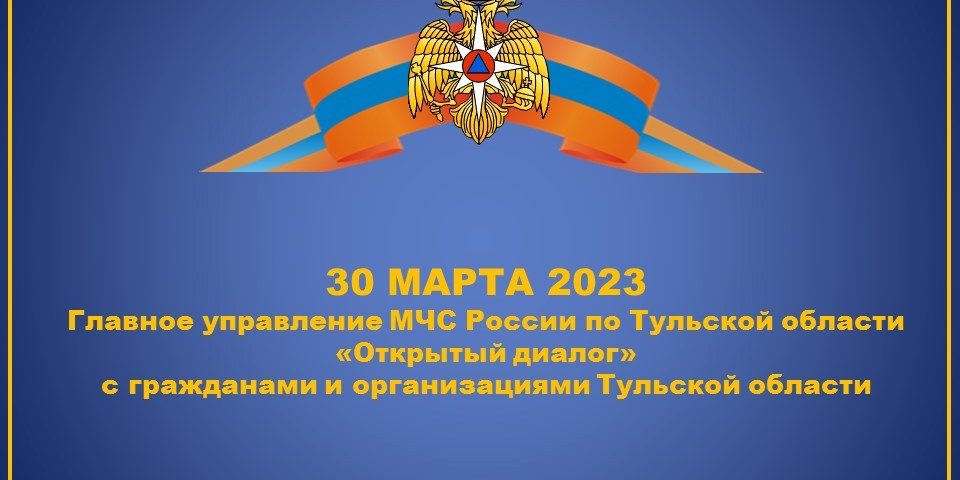 30 марта 2023 года с 10:00 до 13:00 Главным управлением МЧС России по Тульской области на базе Городского концертного зала (г. Тула, ул. Советская, д. 2) запланировано проведение “Открытого диалога” с гражданами и организациями Тульской области.