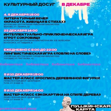 Наступает морозный декабрь – первый месяц зимы и последний месяц для траты денег с Пушкинской карты. Все неиспользованные средства сгорят 31 декабря