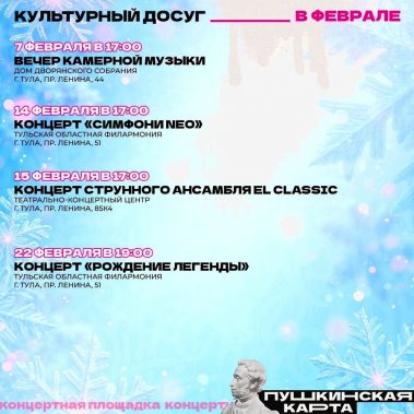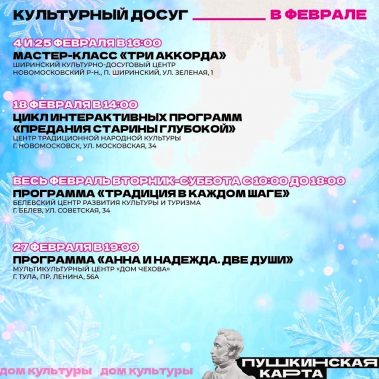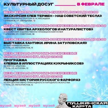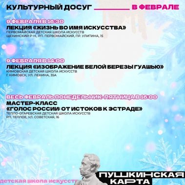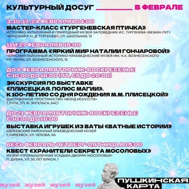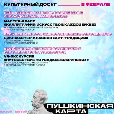 Впереди последний месяц зимы. Самое время выбрать что-то интересное по Пушкинской карте.