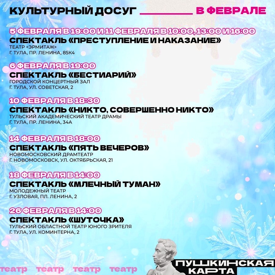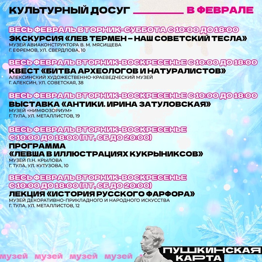 Впереди последний месяц зимы. Самое время выбрать что-то интересное по Пушкинской карте.