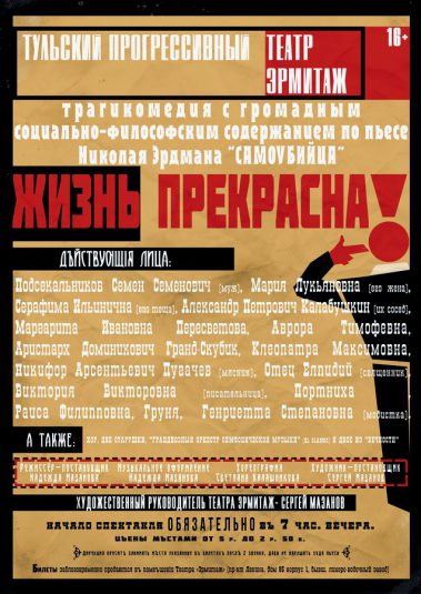 29.04. (чт) | 19-00. ПРЕМЬЕРА. «Жизнь прекрасна». Трагикомедия с громадным социально-философским содержанием (по пьесе Н. Эрдмана). 16+.