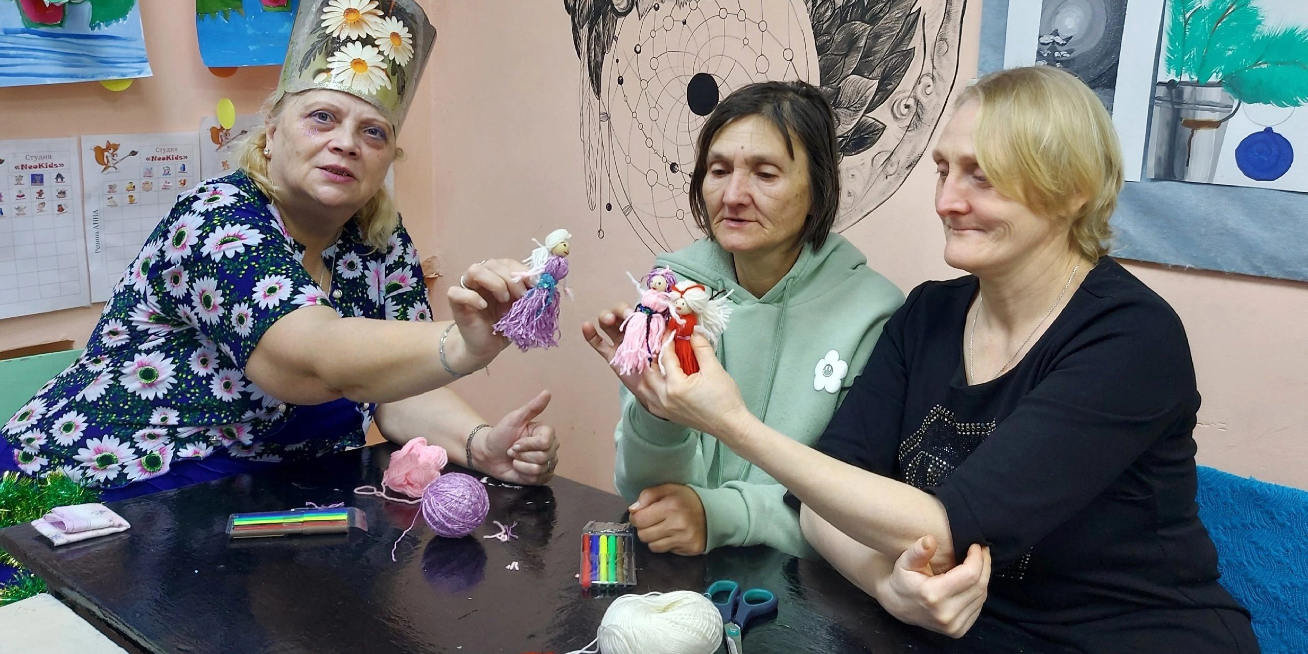 Занимались творчеством, делали куколок из цветных ниток в подарок близким