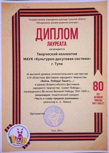 9 мая 2024 года – Тематическая концертная программа «Честь и славу предков умножаем» (режиссер Андрей Лёвин) – г. Тула – ГОРОДСКОЙ КОНЦЕРТНЫЙ ЗАЛ