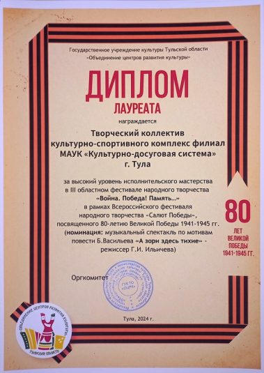 14 ноября 2023 года (премьерный показ) – Музыкальный спектакль по мотивам повести Б. Васильева «А зори здесь тихие» (режиссер Галина Ильичева) – пос. Ленинский – КДС | Большая Тула