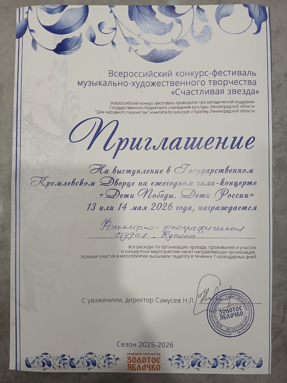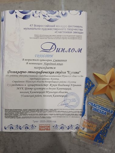 Фольклорно-этнографическая студия “Купина” МУК Центр культуры и досуга Каменецкий стала обладателем ГРАН-ПРИ, и приглашена принять участие в концерте “Дети России” в Государственный Кремлевский Дворец!