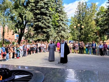 Перед минутой молчания настоятель храма, отец Ярослав провел панихиду по погибшим воинам в годы Великой Отечественной войны.