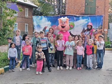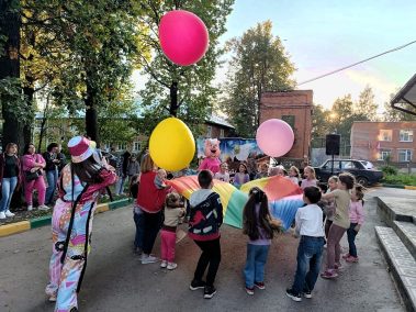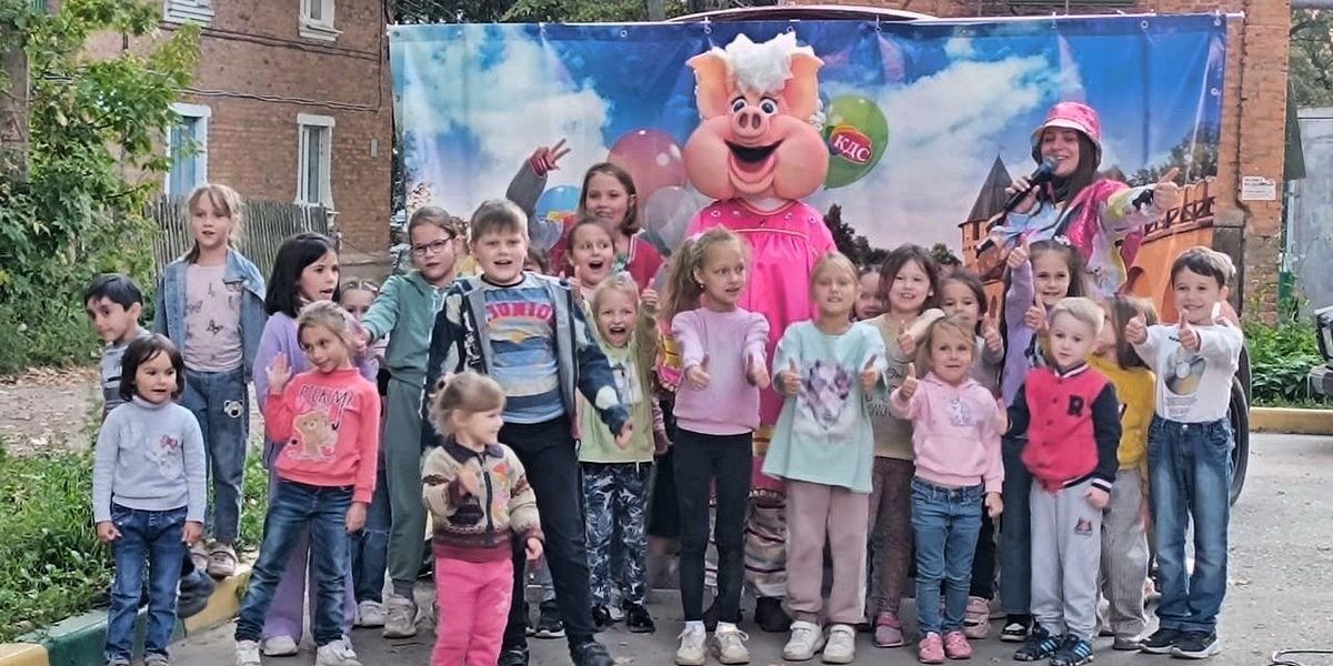 Юные участники праздника вместе с Пончиком и Нюшей поиграли в огромные воздушные драже, конфетные бои и посоревновались в эстафетах с мороженным.
