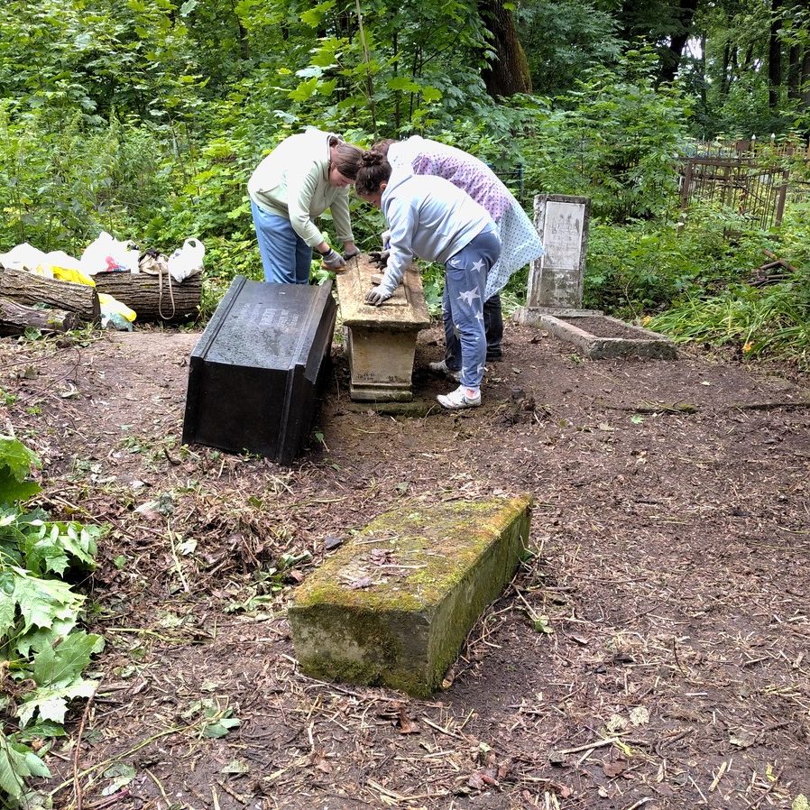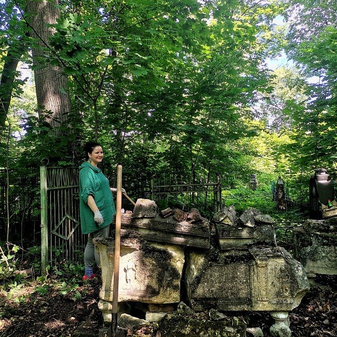 За это время мы расчистили множество участков с захоронениями, разобрались с семантикой изображений на надгробиях и даже совершили парочку открытий. Для всех участников Ирина Григорьевна Ковшарь проводила занимательные лекции о Туле, ее жителях и истории Всехсвятского кладбища.