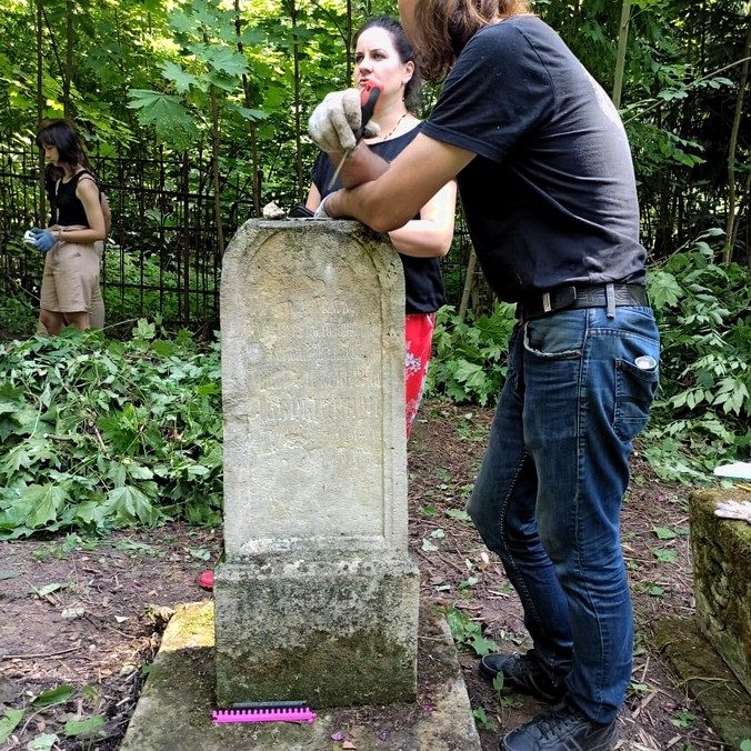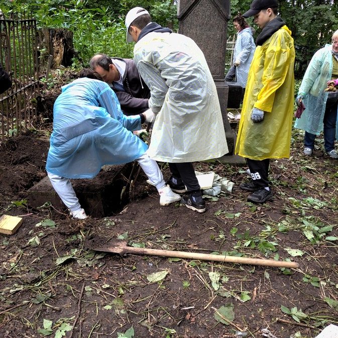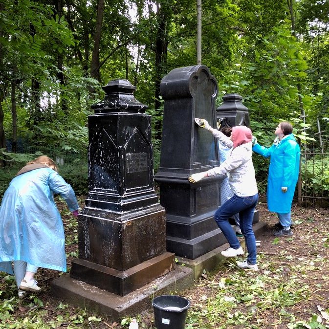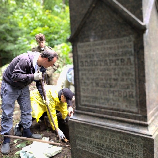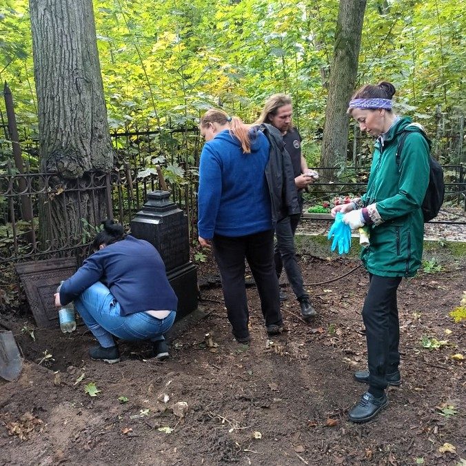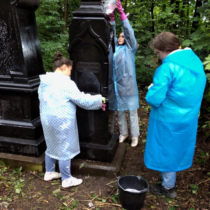 3.Волонтеры-реставраторы.Санкт-Петербург/Москва (были проведены работы по расчистке от краски постаментов скульптурных надгробий на участке Слюсаревых)