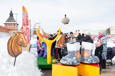 На протяжении всего народного гуляния, вдоль набережной раскинулись развлекательные площадки с профессиональными аниматорами. Дети и взрослые смогли поучаствовать в мастер‑классе “Масленичная кукла”, а также получить сладкие угощения от праздничных коробейников.