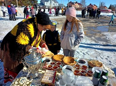 В Барсуковском Доме культуры прошло театрализованное представление с участием театрализованных народных героев. В исполнении народного вокального ансамбля “Берегиня” и вокального ансамбля “Сладка ягода” прозвучали любимые песни. Зрители водили хороводы, угощались блинами и ароматным чаем.