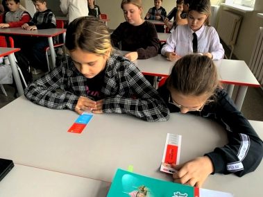 Так же раздали ученикам 5-ых классов закладки в книги с символикой проекта “Общее дело-ПРО” по фильму “4 ключа к твоим победам”, чтобы они с малых лет имели ориентир на лучшую жизнь.
