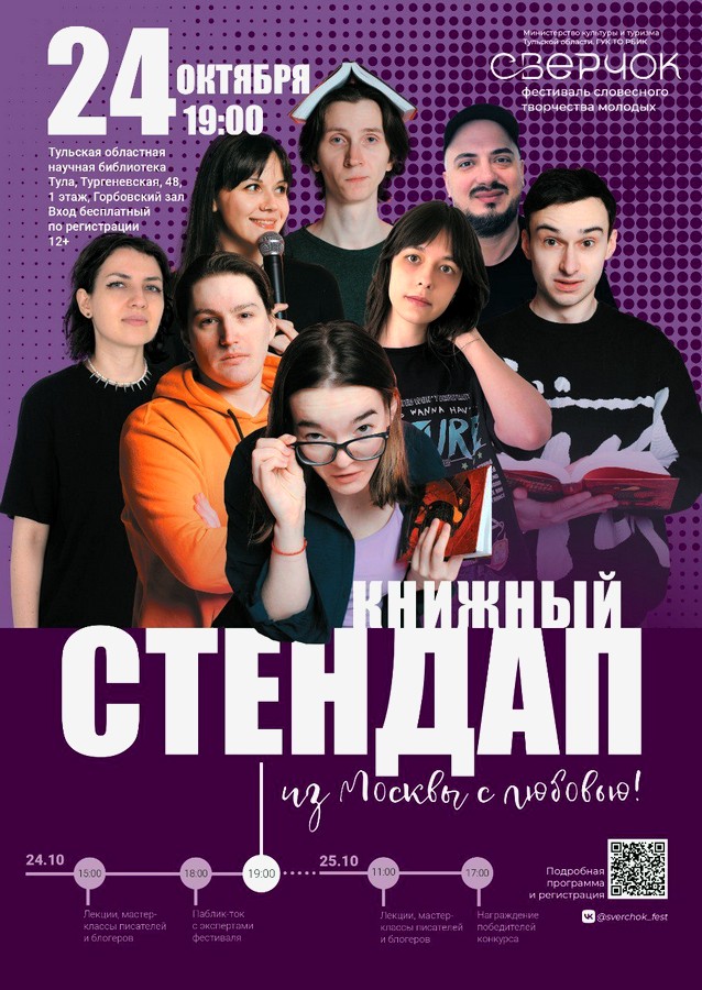 24 и 25 октября в Тульской областной научной библиотеке пройдут главные дни фестиваля словесного творчества “Сверчок”.