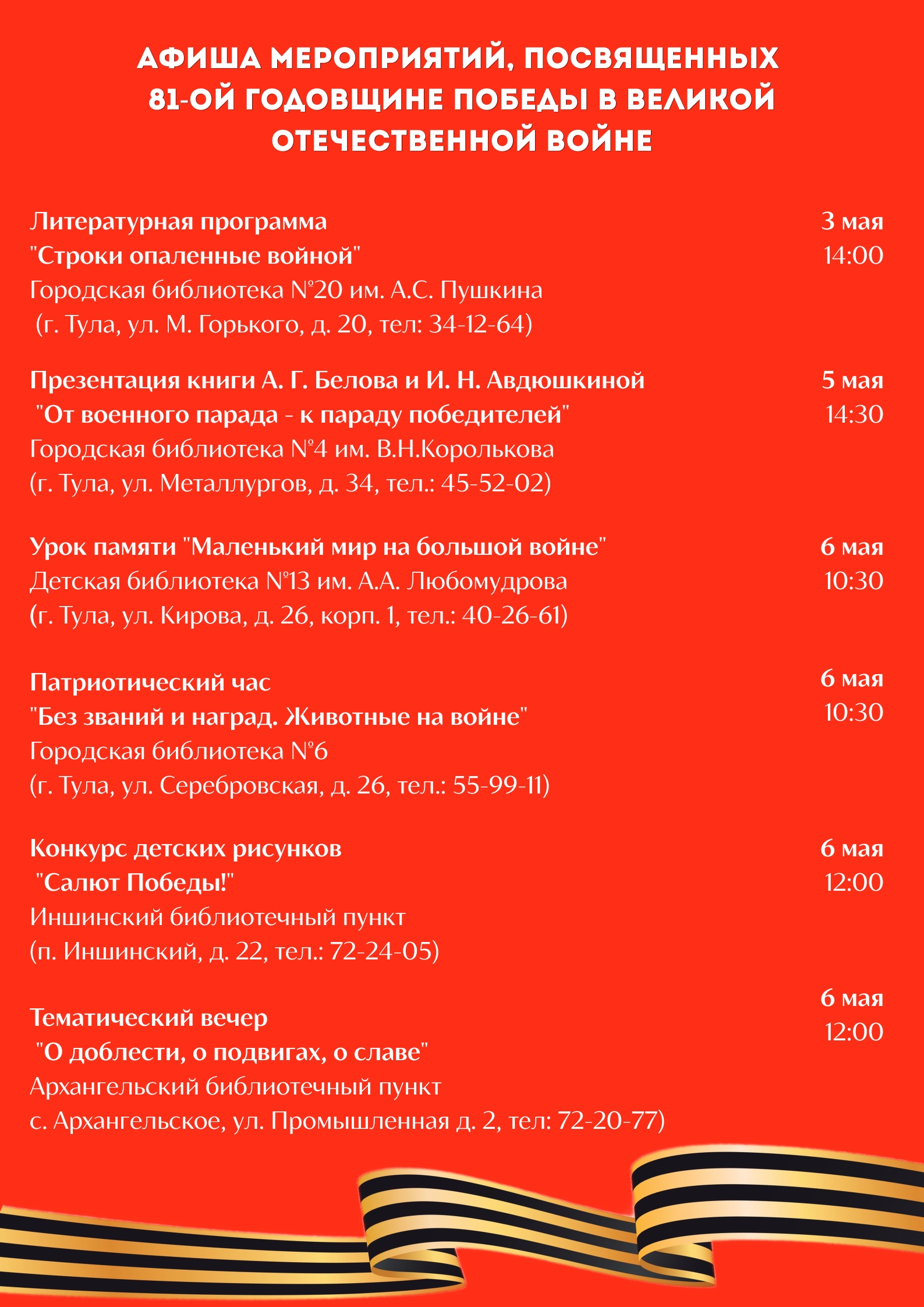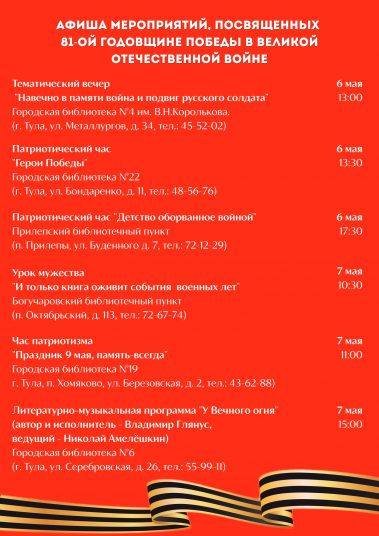 День Победы — это не только история страны, но и история каждой семьи. Приходите в библиотеки, чтобы вспомнить, узнать новое и сказать “спасибо” Героям.