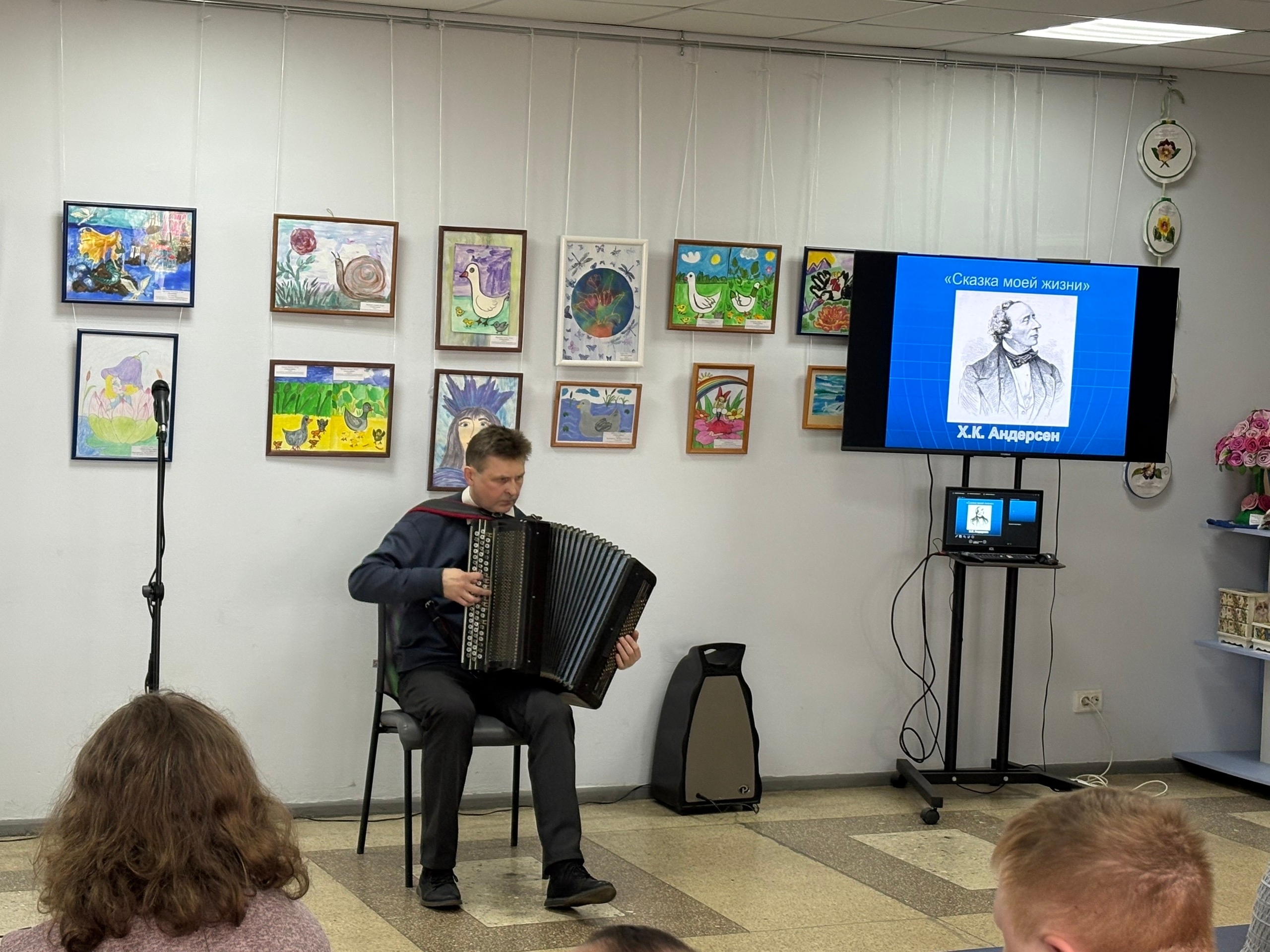Ярким моментом открытия стало выступление концертмейстера Детской школы искусств №6 Александра Анатольевича Ивлева. Он рассказал интересные факты из биографии писателя, а также исполнил музыкальное произведение по мотивам сказки “Снежная королева”.