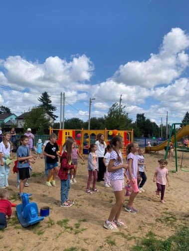 Сотрудники Центра творчества “Михалковский” провели игровую программу на открытии детского городка в пос. Михалково на пересечении улиц Косогорская и Тверская.