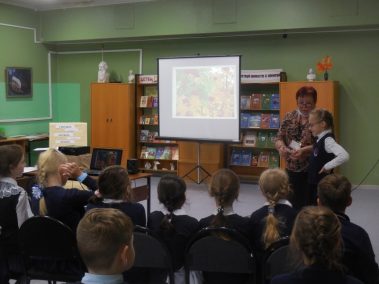 Библиотекари рассказали детям об осенних месяцах (чем они примечательны, как назывались в старину), прочитали стихи, посвящённые осени.