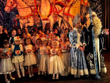 По окончании представления ребятам вручили новогодние сладкие подарки