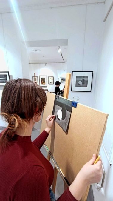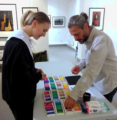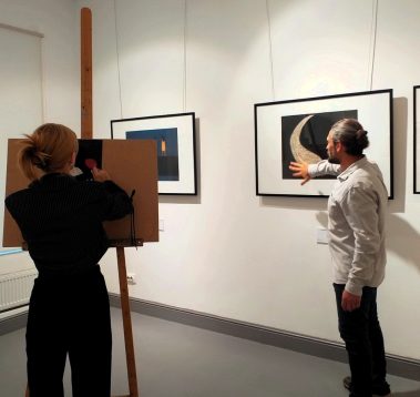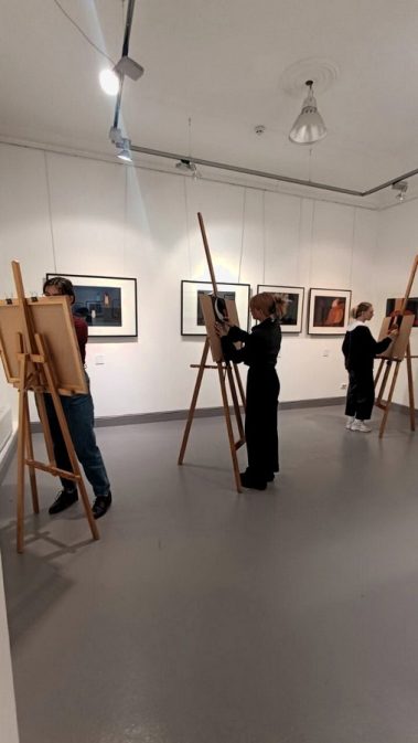 В начале занятия Армен провёл детальную, на три четверти часа, экскурсию по выставке “Цветные сумерки”, комментируя особенности техники и манеры письма Петра Дика, фокусируя внимание на нюансах композиции и цветовых решений. Затем каждый из присутствующих выбрал работу из экспозиции и постарался создать её копию.