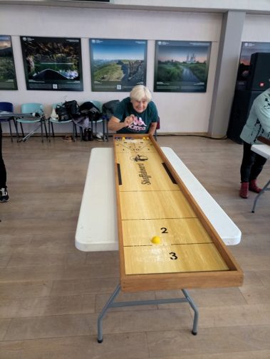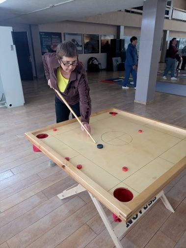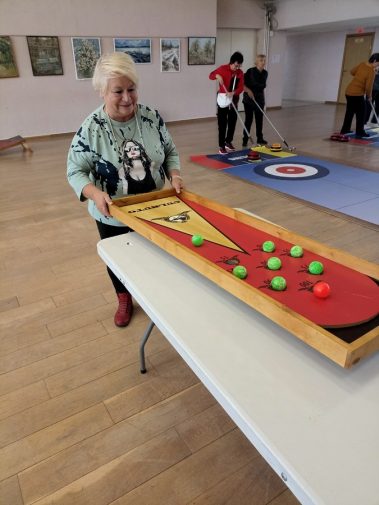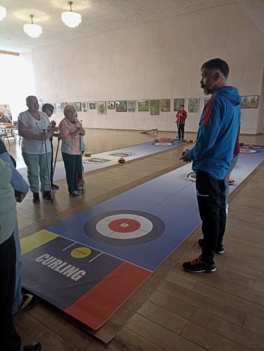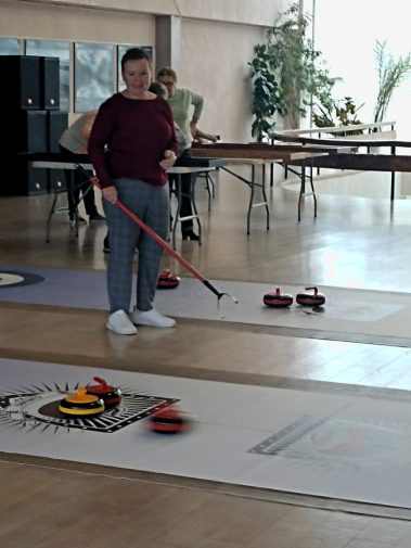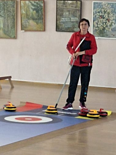 Две команды играли в напольный кёрлинг, отрабатывали броски и разбирали игровые ситуации.