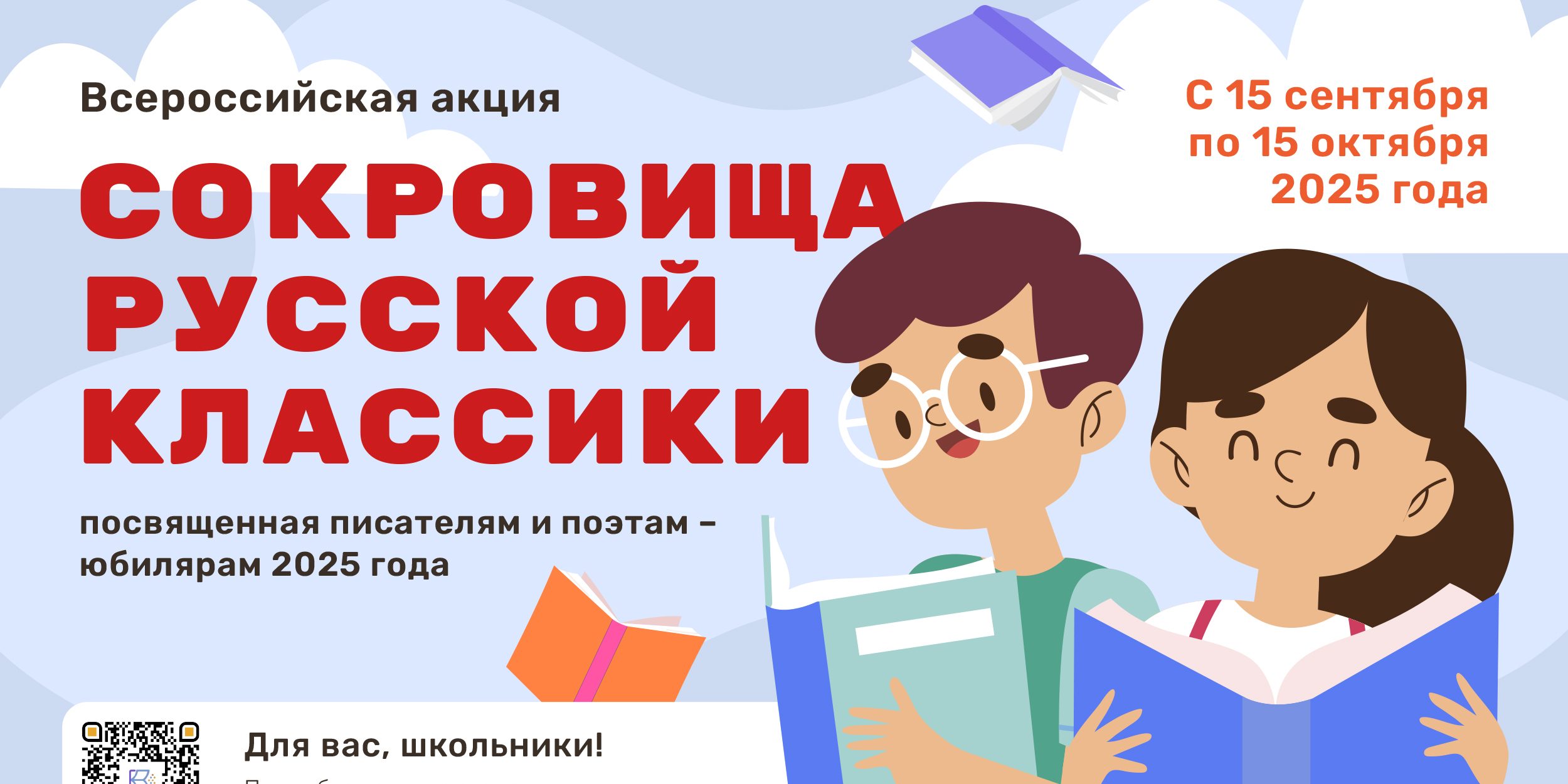 15 сентября 2025 года в рамках межведомственного культурно-образовательного проекта «Культура для школьников» стартует всероссийская литературная акция “Сокровища русской классики”, посвященная писателям и поэтам – юбилярам 2025 года.