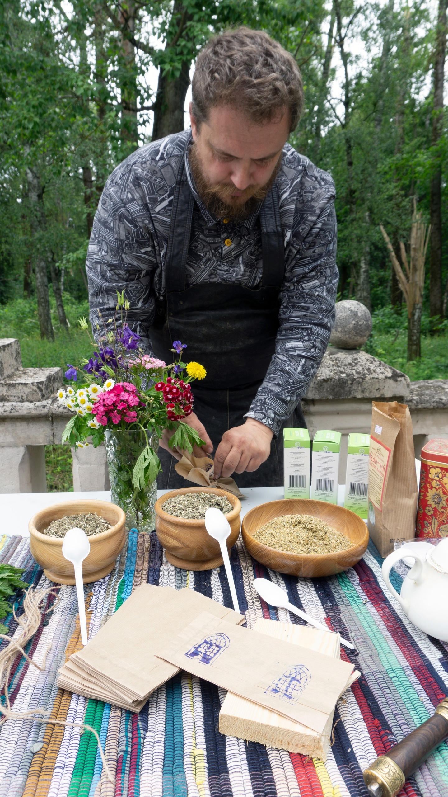 Реставратор, энтузиаст и большой специалист по чайной культуре Борис Глазков раскроет гостям секреты растопки настоящего старинного самовара и приготовления вкуснейшего травяного чая по тульским рецептам. Начало в 11:00.