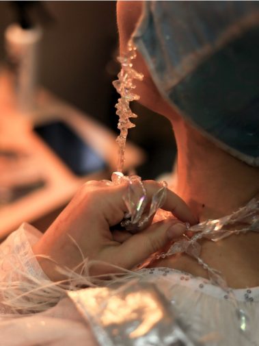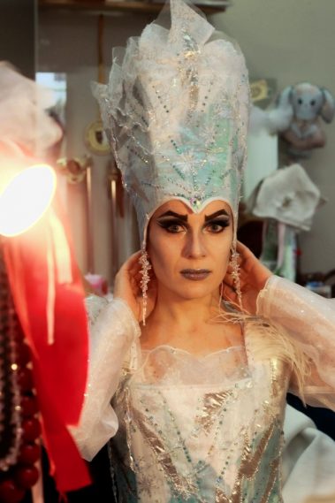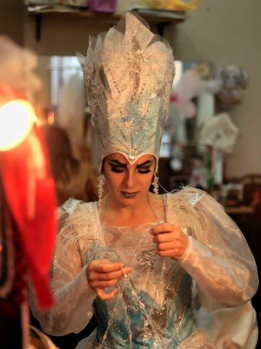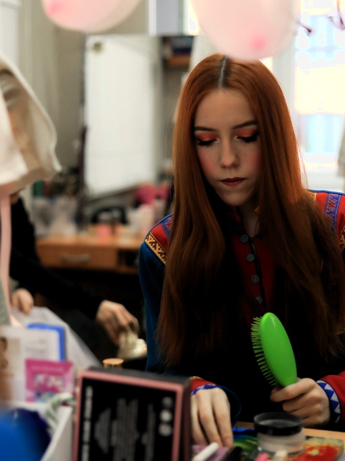 Вот так проходили сборы перед спектаклем “Снежная Королева”: тихий шорох кисти и бус, повторение текста, неспешные утренние разговоры, кружка кофе и мягкий снег за окном.