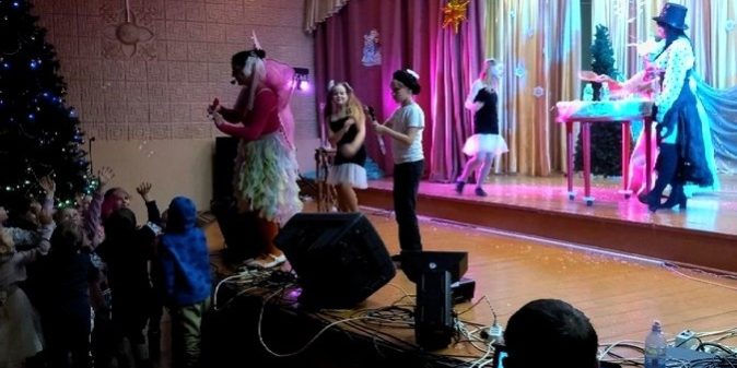 Сегодня, 4 января, уже в Новом году, зрители смогли посмотреть театрализованное представление “Чудеса случаются” с разнообразными эффектами света, дыма и шоу с мыльными пузырями.