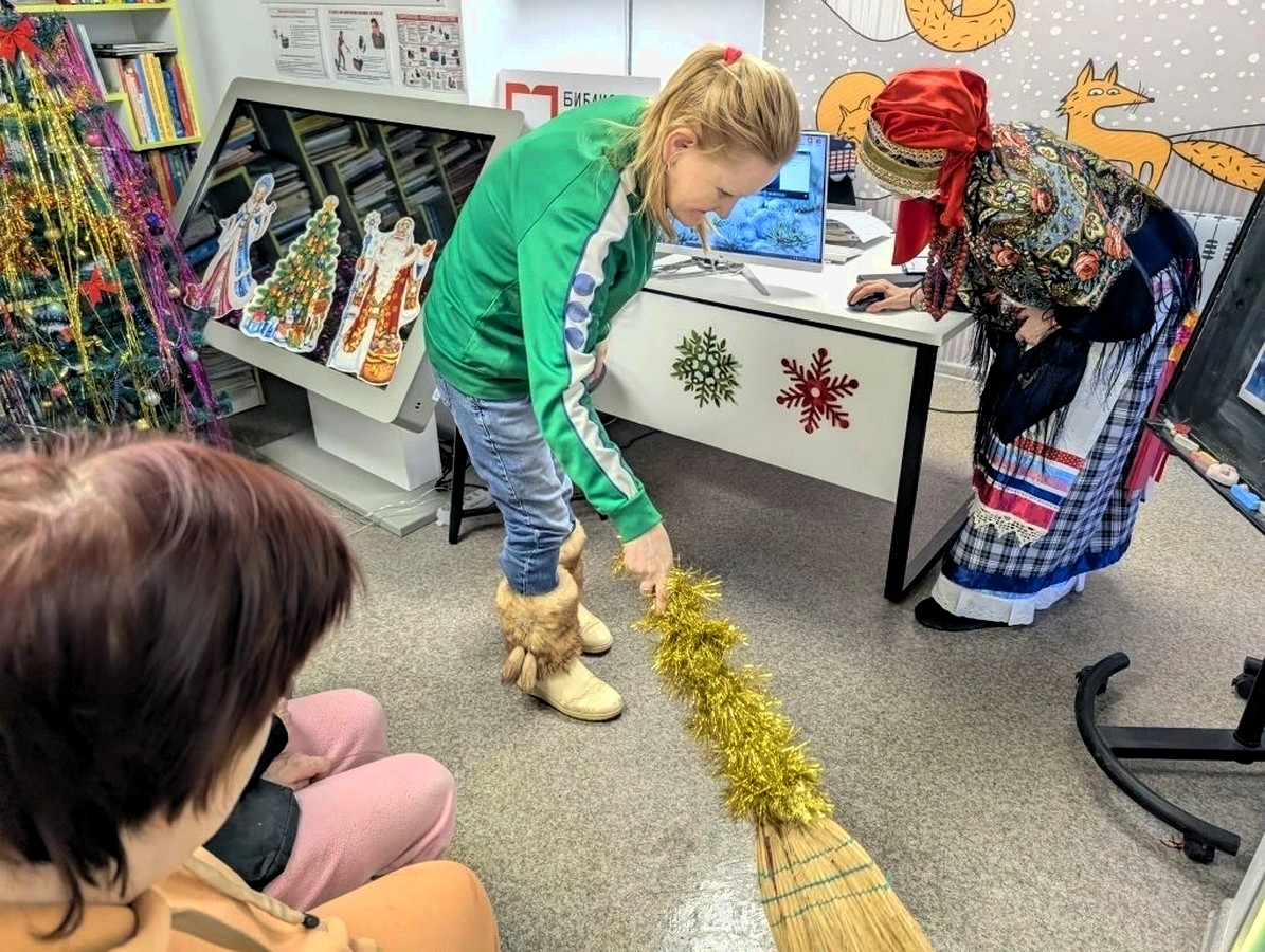А затем ведущая предложила попробовать себя в роли колядующих: спеть колядки, изобразить ряженых, поиграть в зимние игры – “Снежинка”, “Передай метелку” и “Лошадки”.