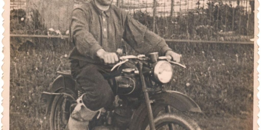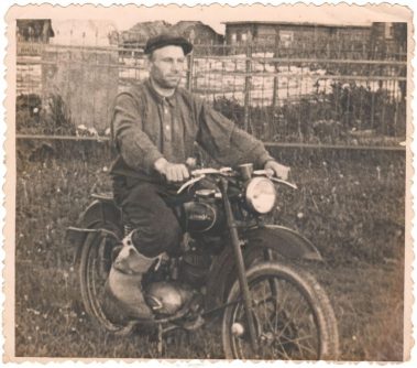 Это послевоенная фотография, может быть, 50-е – начало 60-х. Но для тех времен мопед — целое богатство. Моторизованное средство передвижения. И вот этот стиль — глубокие крылья, такой каплевидный бак. То есть «я тоже мотоцикл, только я маленький мотоцикл”. Вот такой стиль лично мне гораздо ближе, чем мопеды 80-х годов, какие-то стилизованные полуспортивные. Очень стильное фото, такой хозяйственный мужик крепкий чувствуется, не старый еще. Приятно посмотреть”.