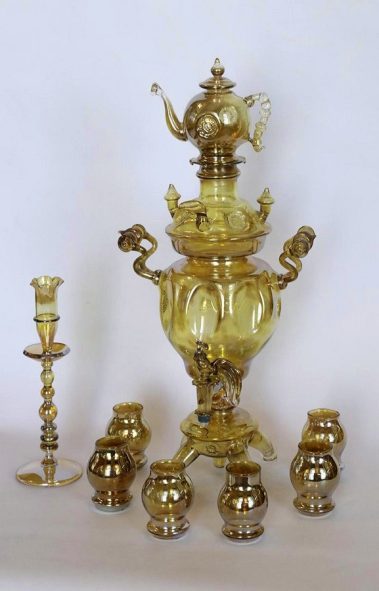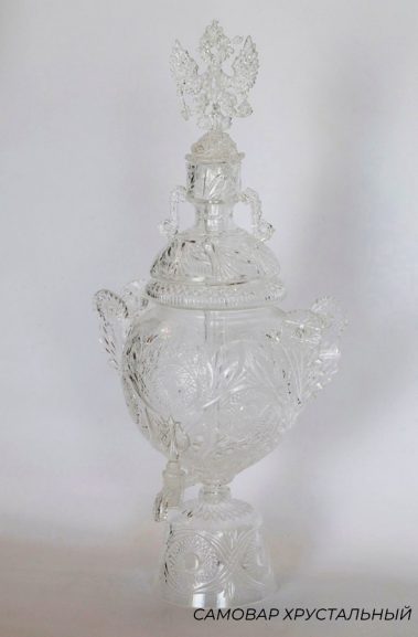 – В экспозиции представлены сувенирные самовары из сахара и хрусталя и экземпляры необычных форм вроде терема и бочонка.